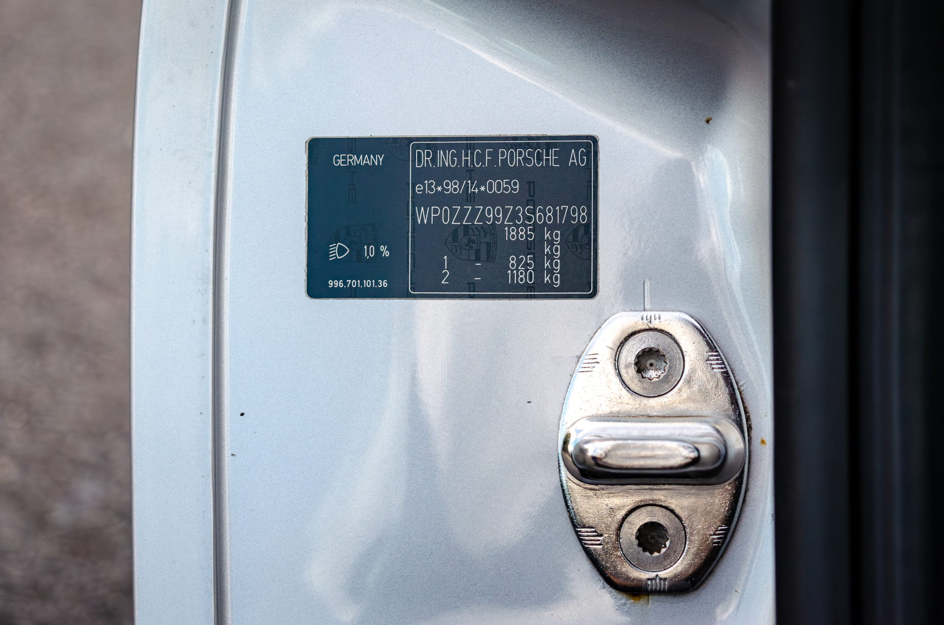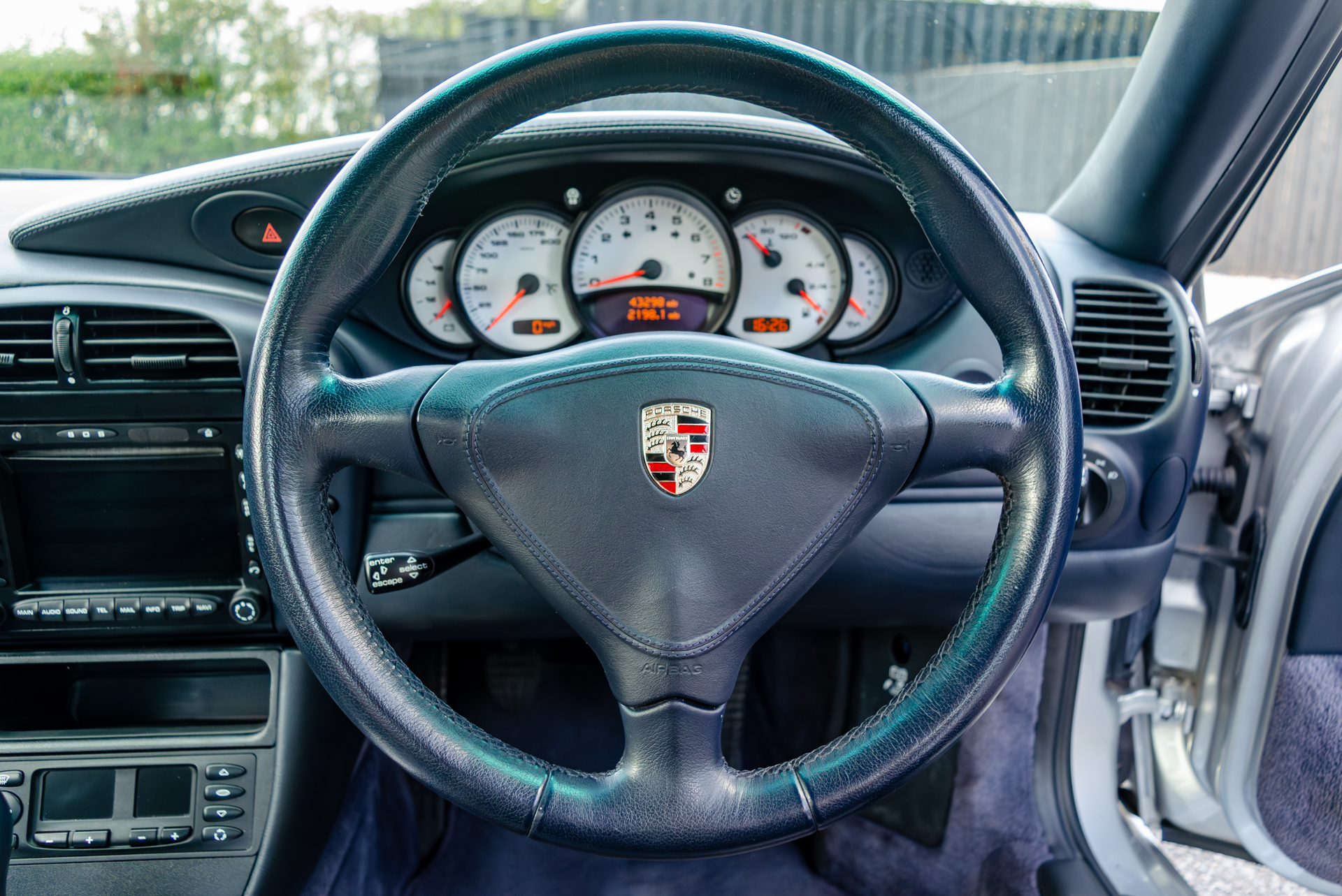 We are pleased to have acquired this immaculate C16 manual example, finished in the timeless colour combination of Arctic Silver Metallic with a full Metropole Blue leather interior. Supplied by Porsche Centre Kendal on the 14th of April, 2003, it has covered just 43,000 miles from new. Regular servicing took place until 2015 by either Porsche main agents or specialists before the car was put into long term storage at 40,000 miles. Regularly exercised and an MOT carried out every year since, the car received a comprehensive recommissioning at a cost of £7,000 this year.
