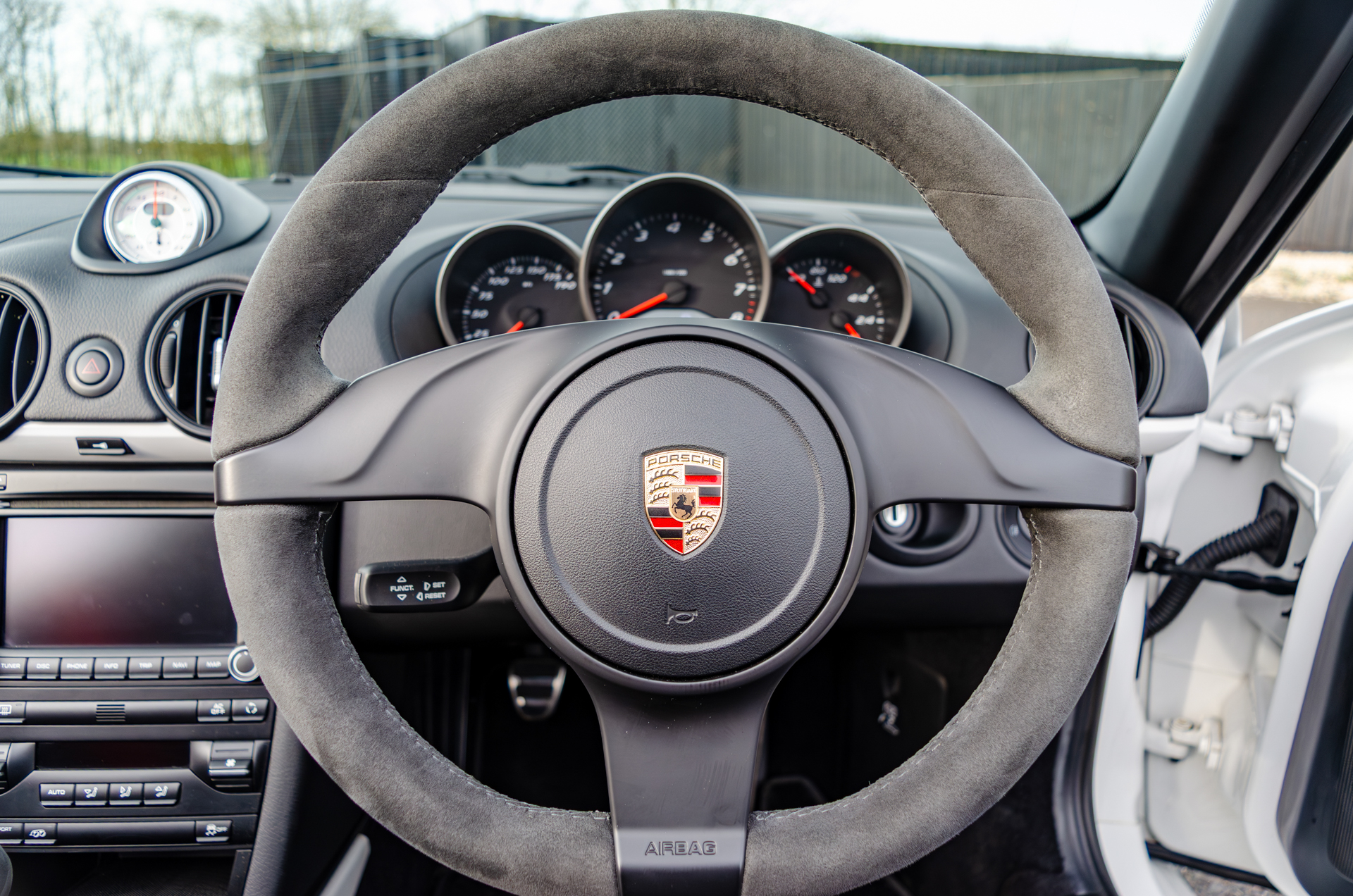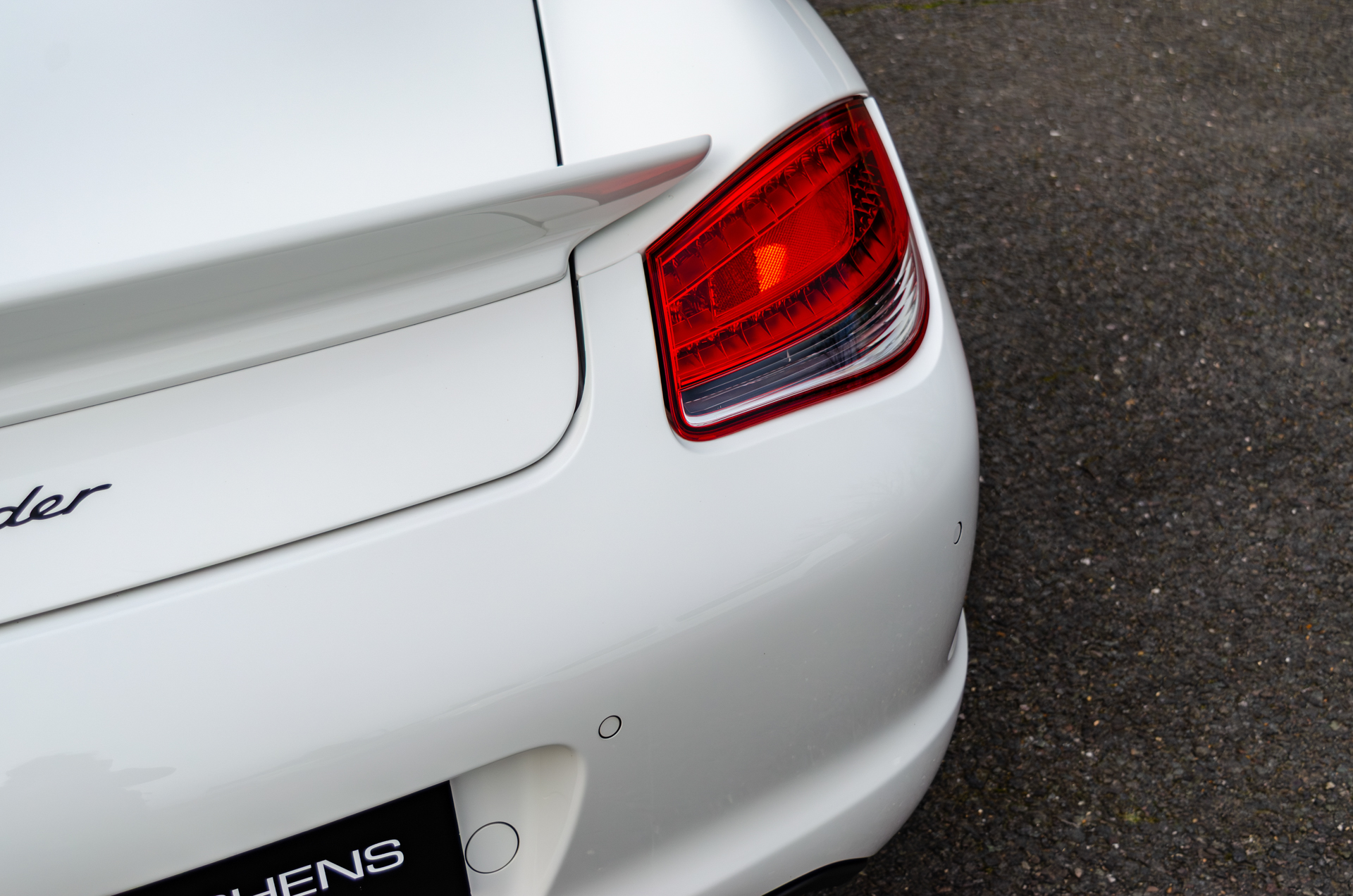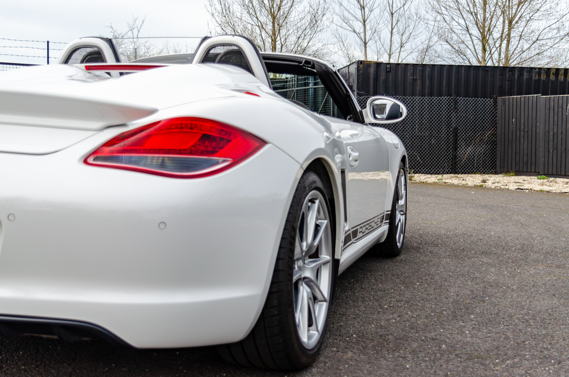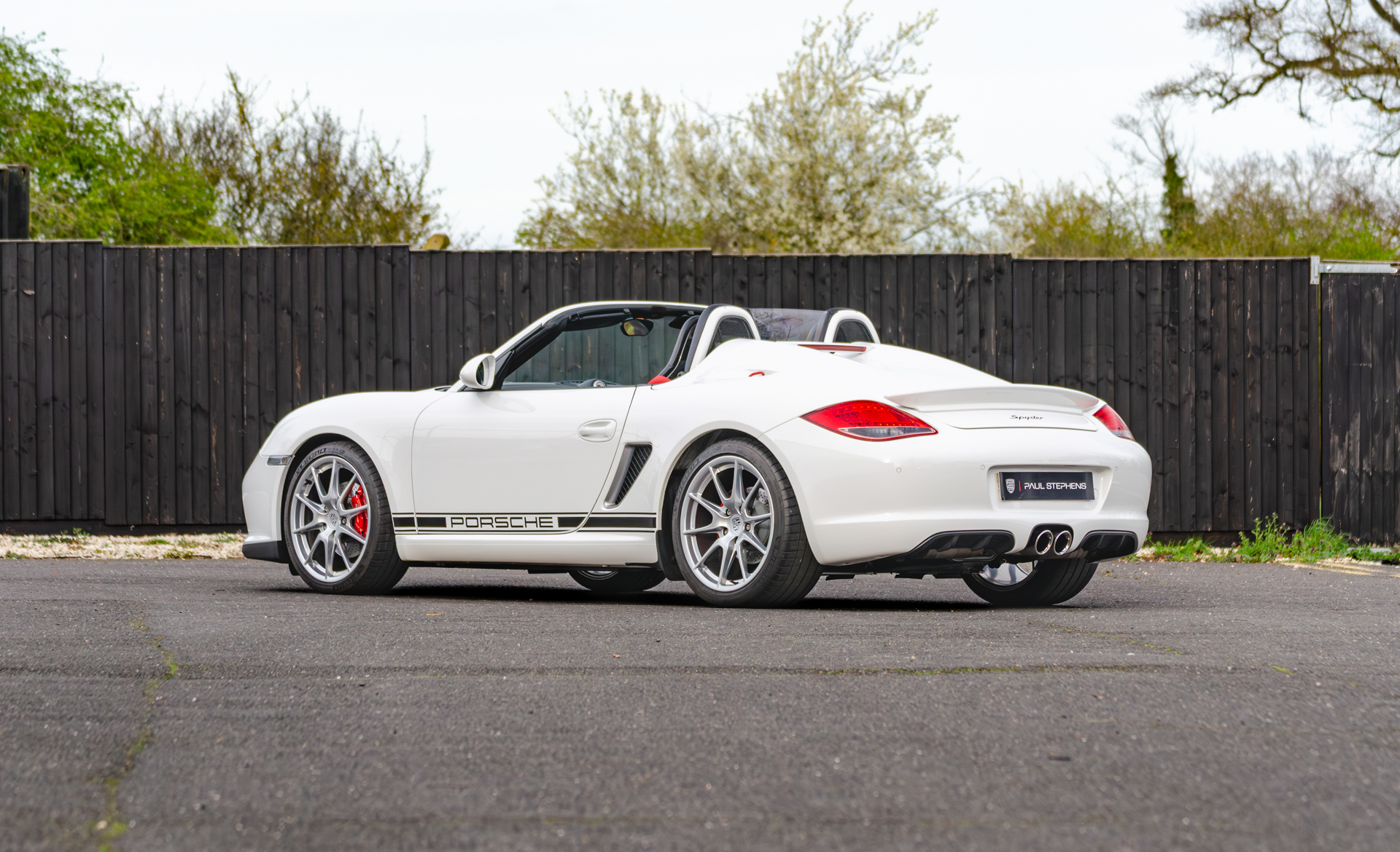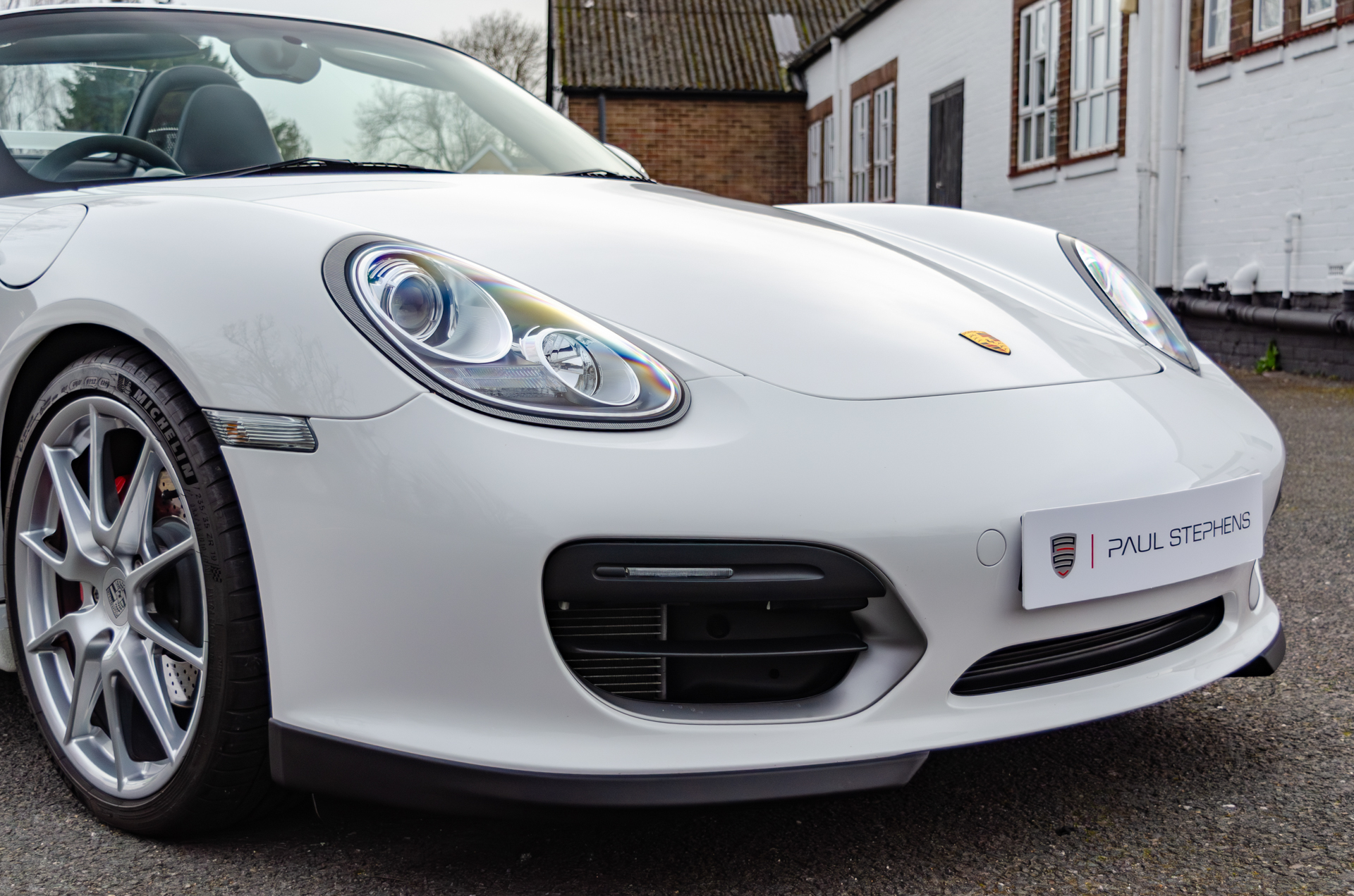 We really rate them here at PS and we’re delighted to have this special example in stock. In Carrara White, with just 14,600 miles showing, it was delivered to Porsche Centre Sheffield in December 2011, making it one of the last of the 987 Boxster Spyders.