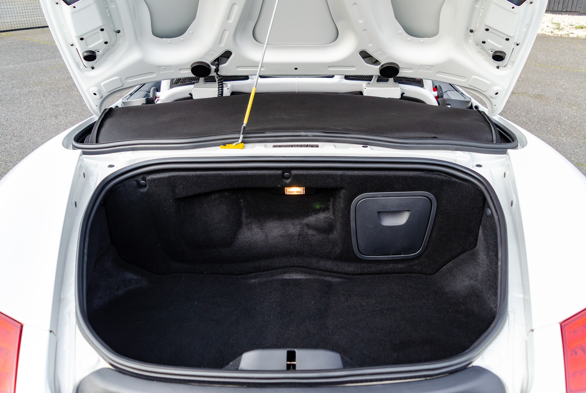 Anything else? Yes, a 20mm lowered sports chassis with fixed mechanical dampers tuned to the Spyders reduced weight with no PASM option, a mechanical limited slip differential, and an extra 10bhp, taking the 3.4-litre flat-six to 320bhp and the Boxster Spyder to a top-speed of 166mph and 0-60mph in 5.1 secs.