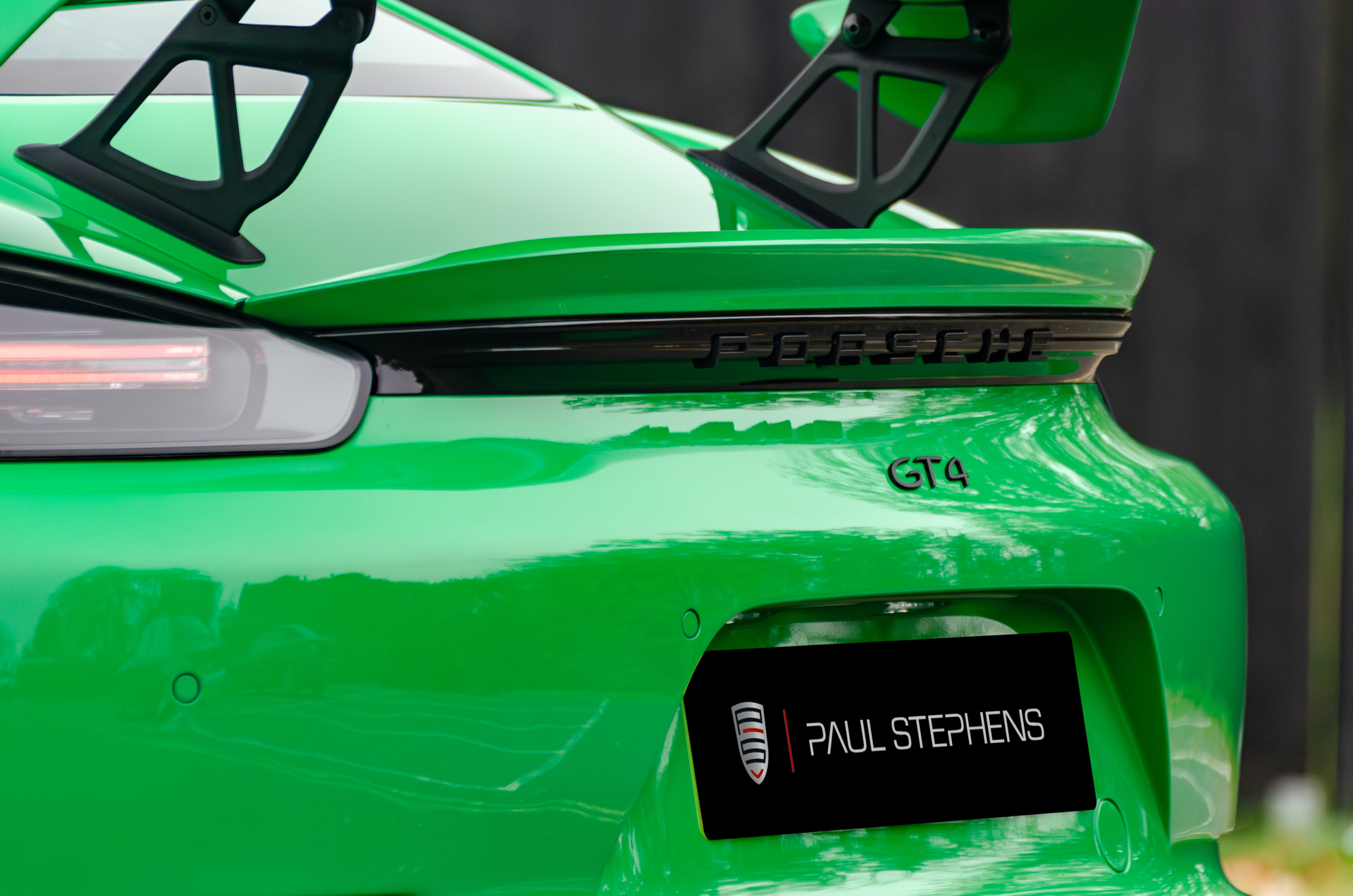 We are pleased to offer this 718 Cayman GT4 for sale, finished in Python Green, it was supplied by Porsche centre Perth 15/07/2022 with the following specification.
